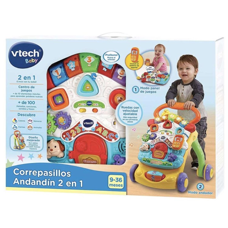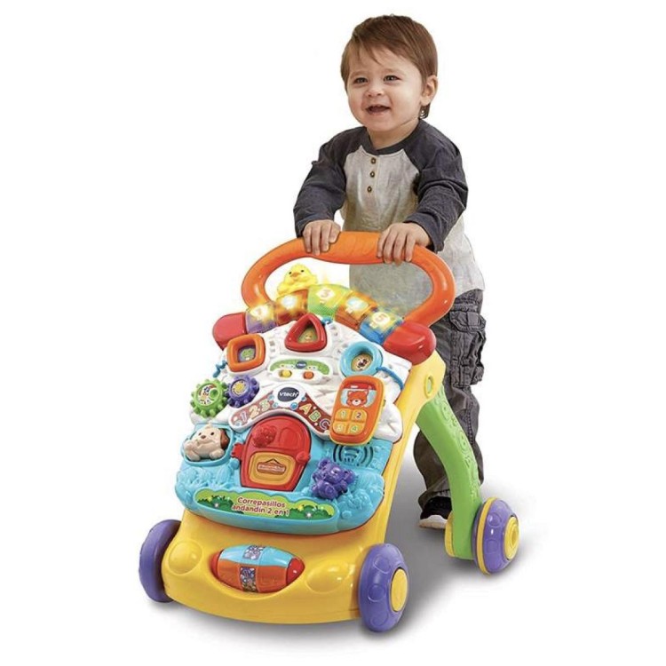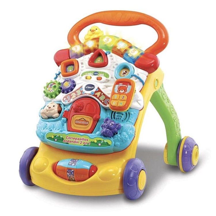El Comienzandar 2 en 1 acompaña al bebé desde la posición sentada con su panel de actividades hasta los primeros pasos como andador. Incluye luces, sonidos, teléfonos y piezas móviles para experimentar.