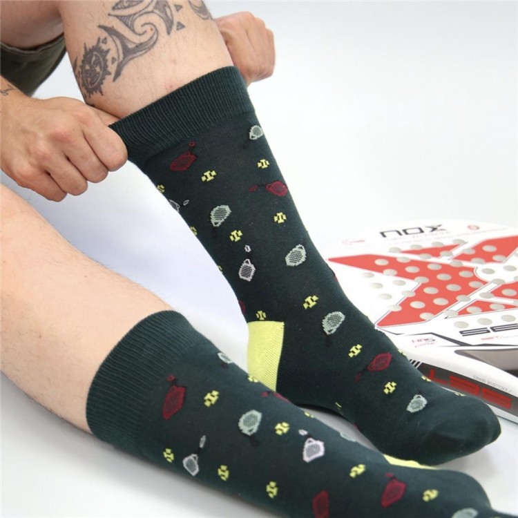 Estos calcetines de algodón con diseño de pádel con raquetas y pelotas aportan un toque divertido a tus looks de diario. Su punto suave y elástico se adapta muy bien al pie, ofreciendo comodidad para llevar en casa o con zapatillas.