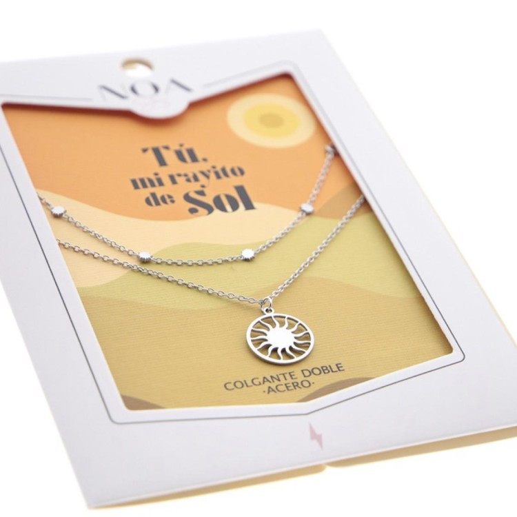 • Colgante doble de acero plateado con sol central