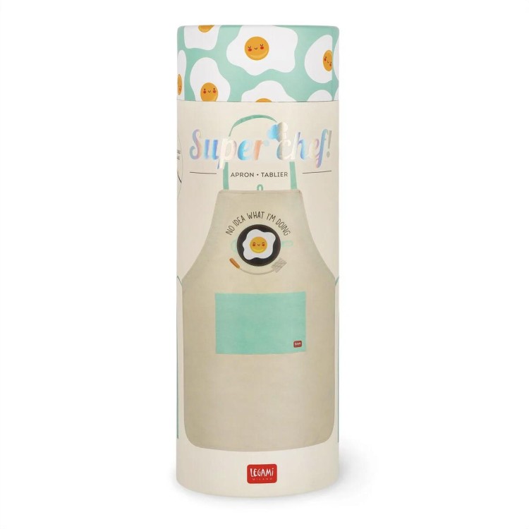 Delantal Super Chef Egg de Legami con ilustración de huevo frito, pensado para cocinar con estilo y sin miedo a las manchas.