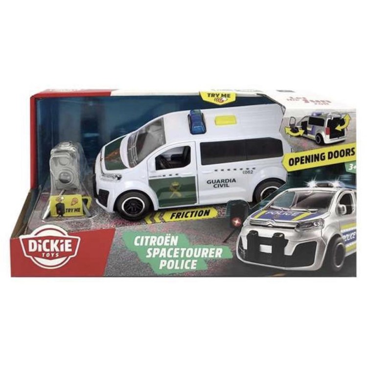 Furgoneta Citroën con serigrafía oficial de la Guardia Civil para recrear servicios y misiones. Incluye efectos de luces y sonidos.