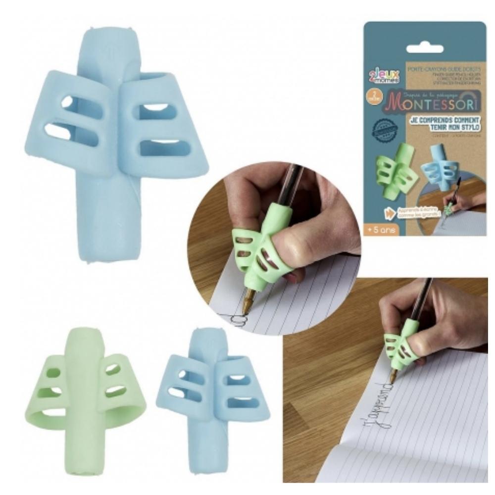 Es un pack de dos portalápices con forma de guía de dedos que sirven para mejorar la postura y el agarre al escribir.