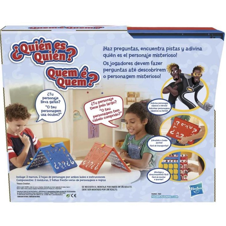 ¿Quién es Quién? enfrenta a dos jugadores en duelos de deducción: formula preguntas de sí/no para descartar personajes hasta adivinar el del rival.