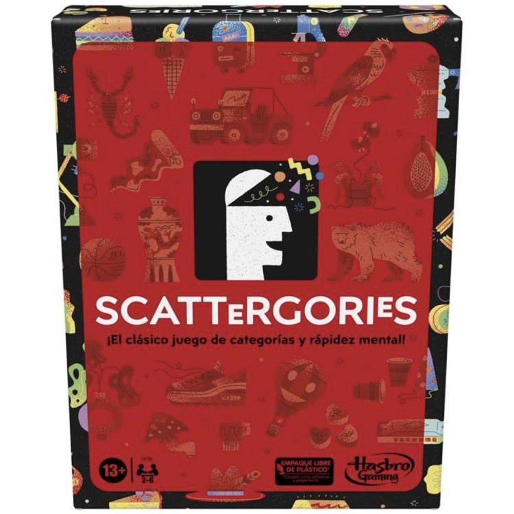 Scattergories es un juego de ingenio donde debes pensar palabras originales según la letra que marque el dado. ¡Gana quien tenga las respuestas más creativas!