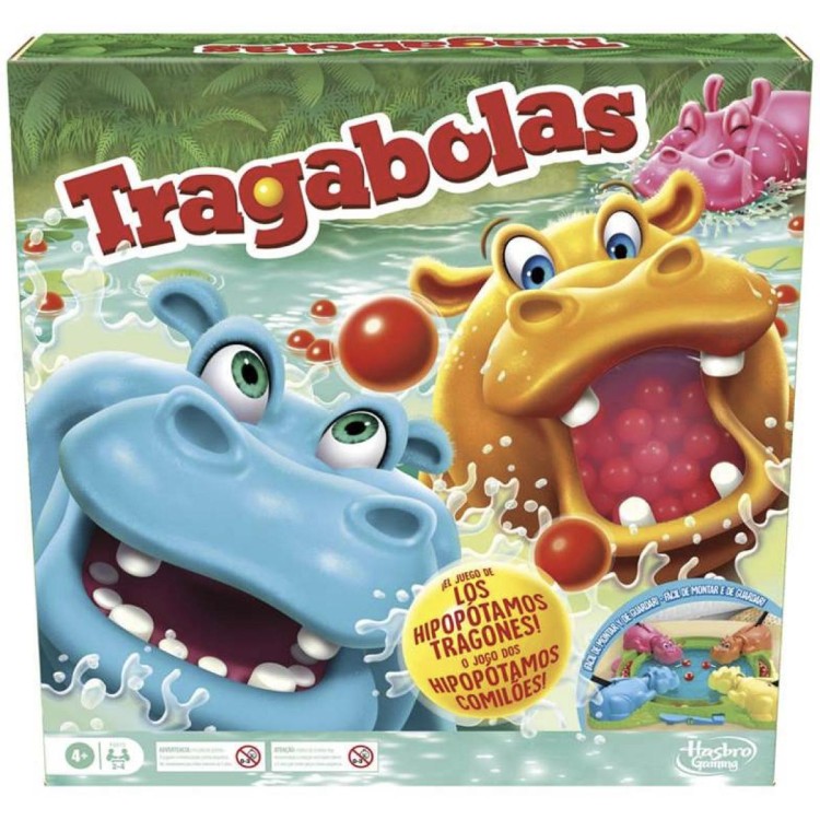 Incluye base con 4 hipopótamos y bolitas de juego. Se monta y recoge en minutos, perfecto para partidas cortas y competidas en familia.