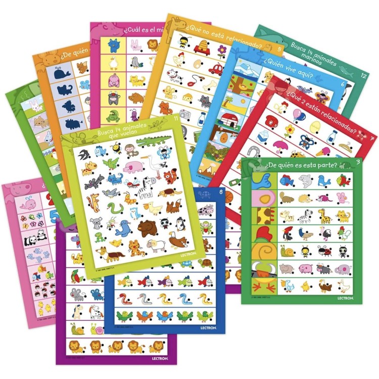 Lectron Los Animales de Diset es un juego educativo con lápiz electrónico que invita a descubrir el mundo animal de forma divertida. Las láminas ilustradas proponen preguntas sobre animales y sus hábitats, y al conectar bien la respuesta el lápiz se ilumina y emite sonido.
