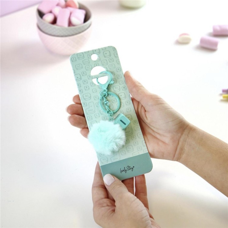 Este llavero pompón menta con letra I de Lovely Story combina una bola de pelo suave con una pieza tipo tecla, creando un accesorio moderno y muy agradable al tacto.