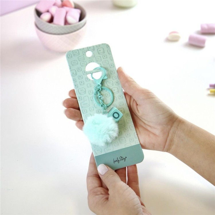 Este llavero pompón menta con letra O de Lovely Story combina una bola de pelo suave con una pieza tipo tecla, creando un accesorio moderno y muy agradable al tacto.