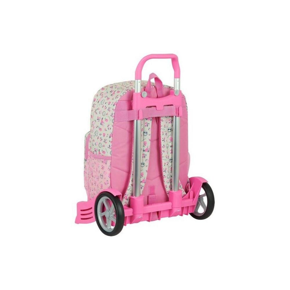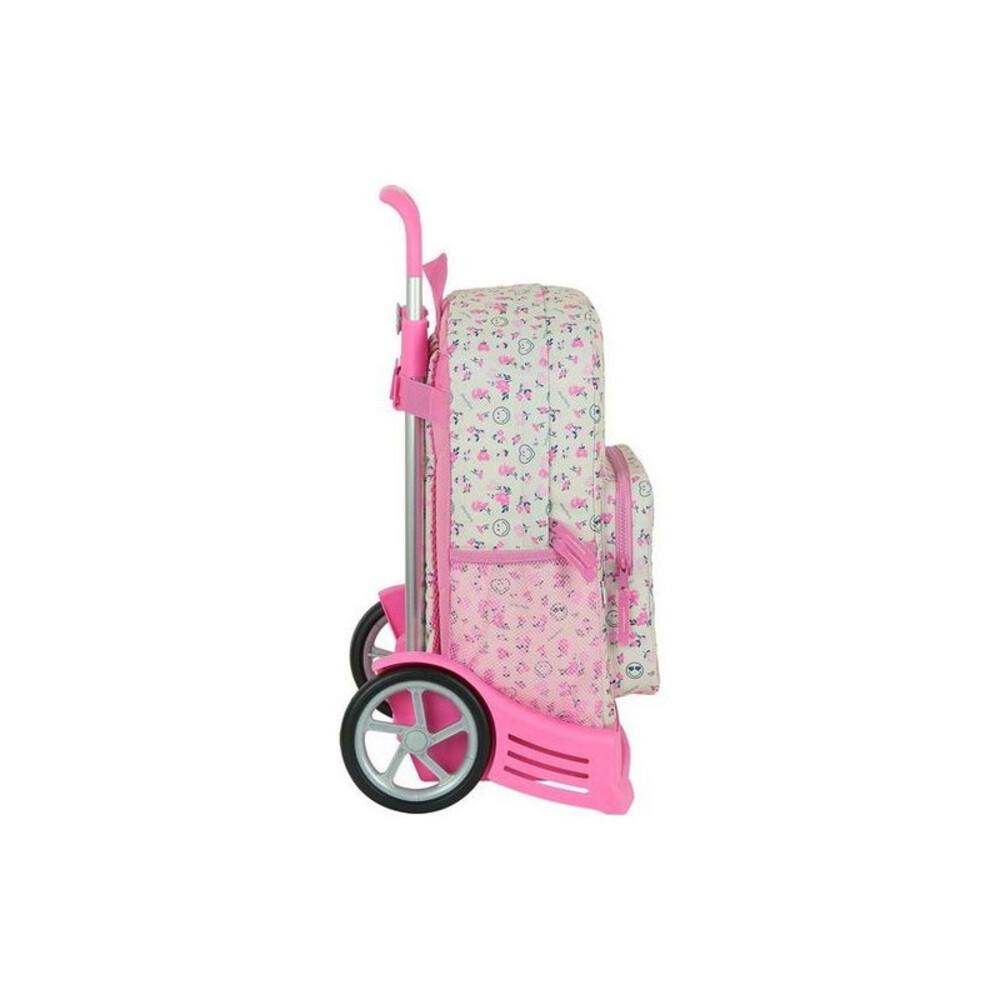 Incluye ruedas resistentes y un tirador ajustable, ideal para que los niños puedan transportarla sin esfuerzo, evitando cargar peso en la espalda.