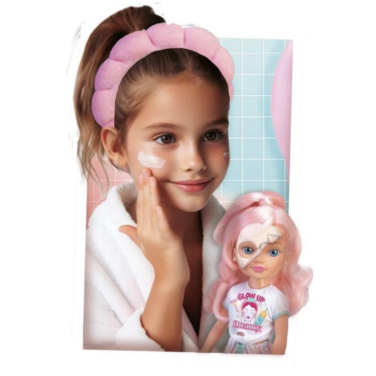 Incluye accesorios beauty (diadema esponjosa, neceser y complementos) para recrear rutinas de spa y maquillajes imaginarios. Fomenta el juego simbólico y la creatividad.