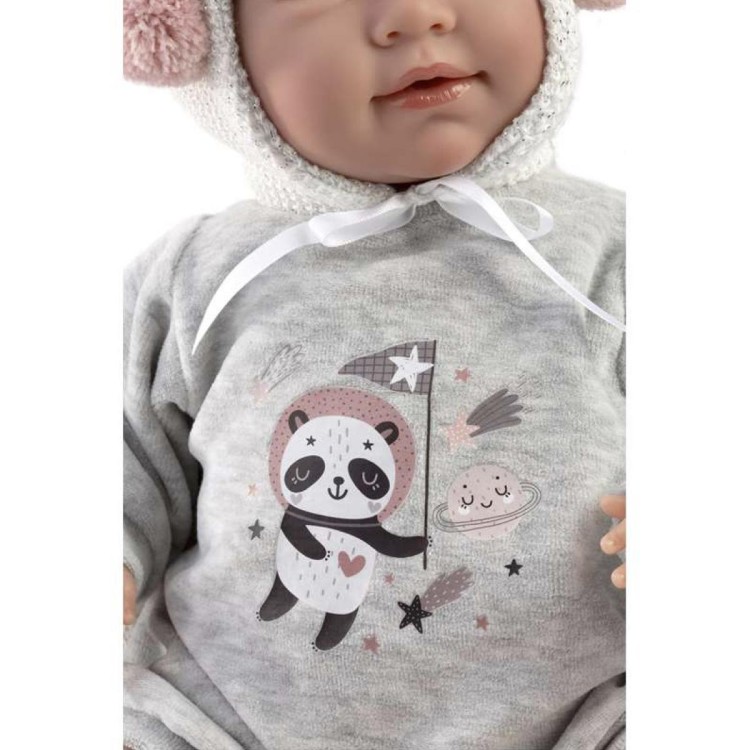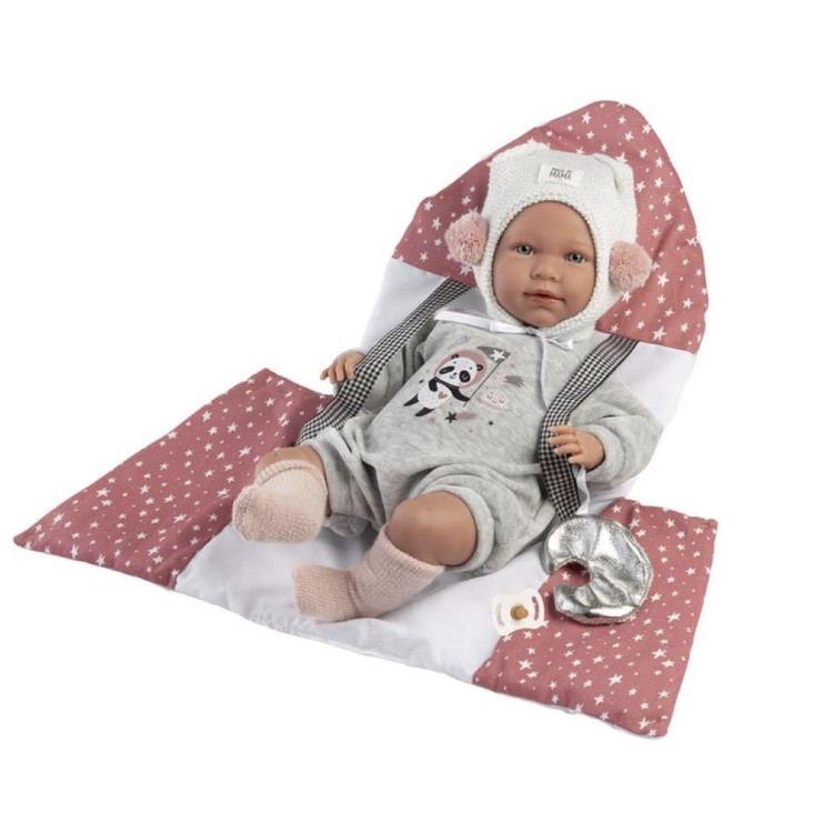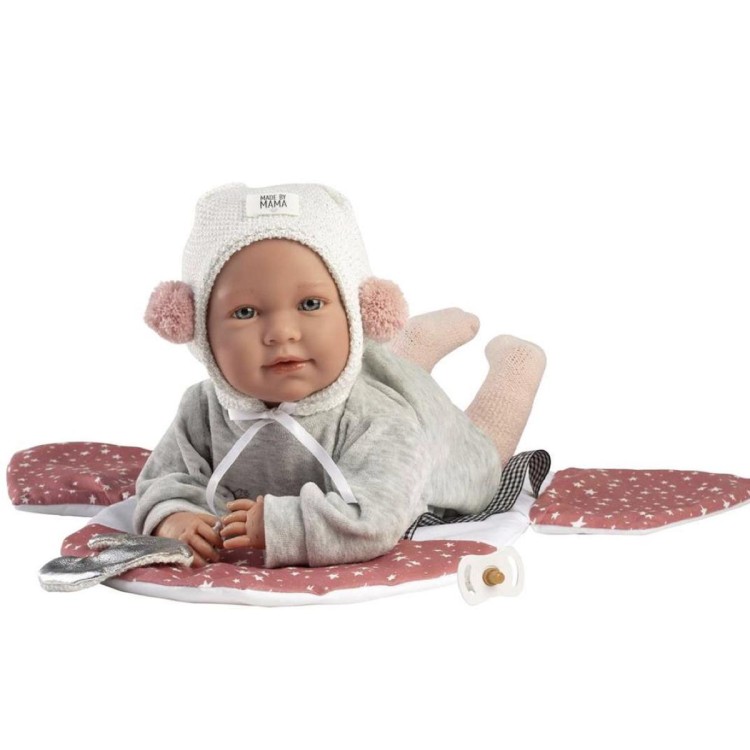 Esta versión de Mimi incorpora un mecanismo de sonido que llora al retirarle el chupete. Mide 42 cm y combina cuerpo de tela con extremidades de vinilo de alta calidad.