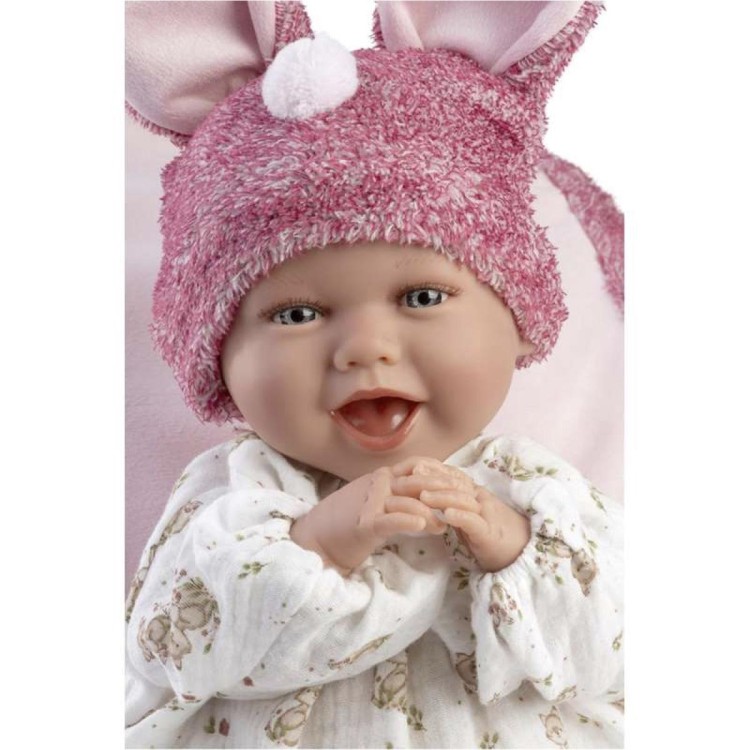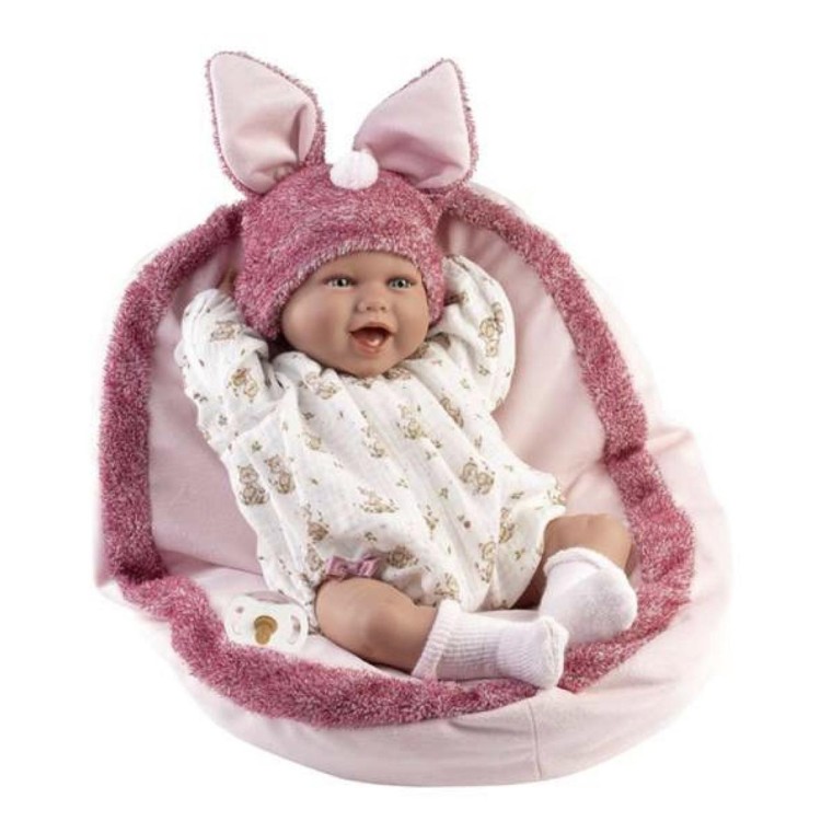 Incluye un suave cojín nido para apoyar a la muñeca, además de gorrito y conjunto coordinado. Favorece el desarrollo emocional y la autonomía en el juego.