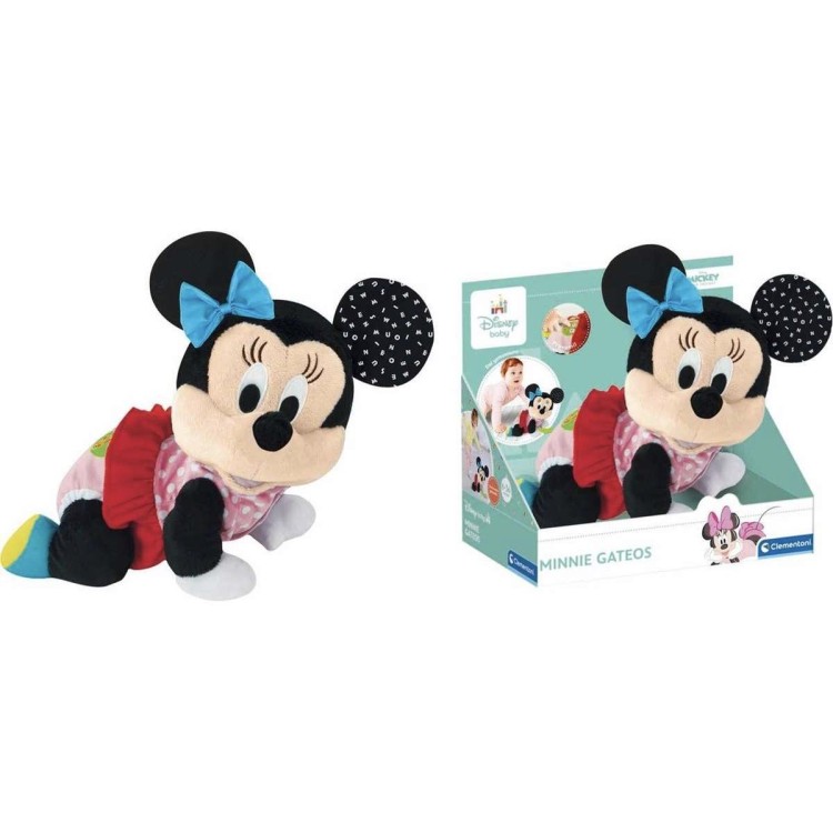 Baby Minnie Gateos es un peluche interactivo que anima a los peques a seguirla mientras se desplaza a cuatro patas. Sus materiales suaves y su diseño amigable fomentan el juego activo y el desarrollo psicomotor.