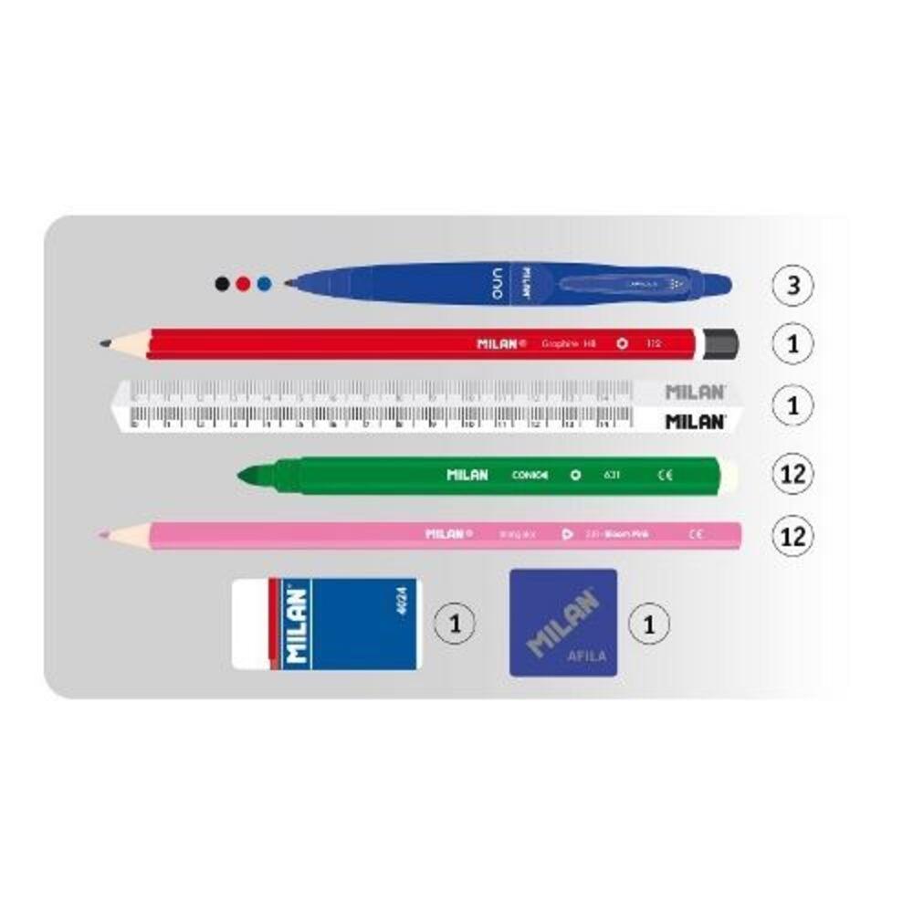 Completo y listo para usar: Contiene una amplia variedad de útiles escolares como lápices, bolígrafos, gomas y más, todo lo necesario para el día a día en la escuela.