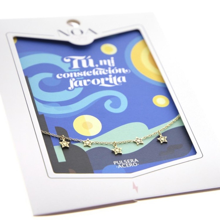 Esta pulsera de acero dorado de la colección Noa Story está pensada para recordarte un mensaje muy especial: Tú, mi constelación favorita. Su diseño combina un estilo actual con un punto sentimental, perfecto para regalar en cumpleaños, celebraciones o simplemente porque sí.