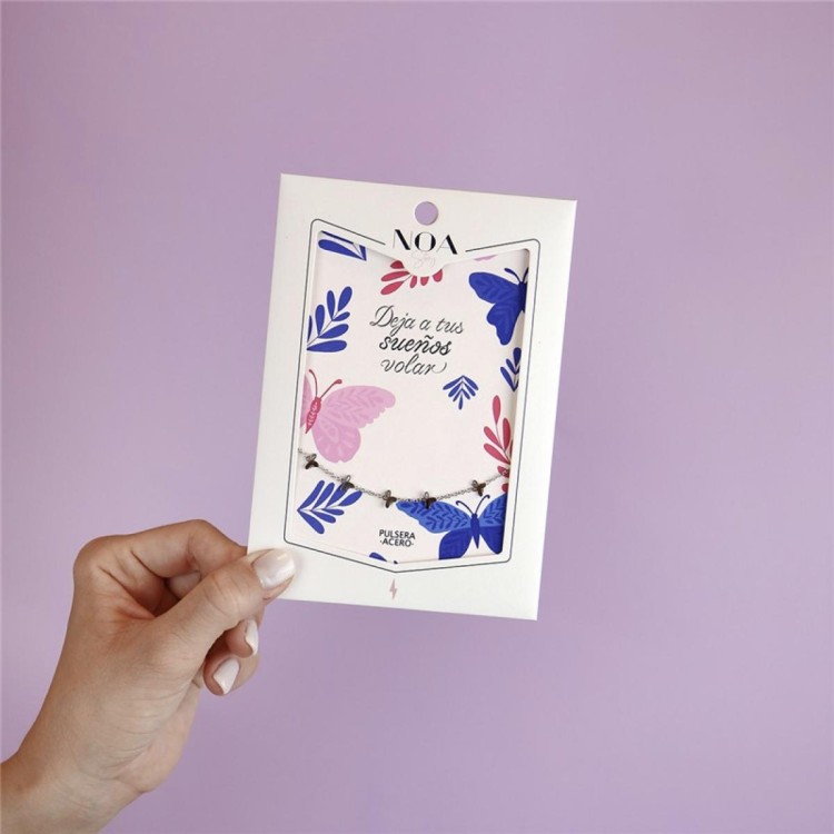 Esta pulsera de acero plateado de la colección Noa Story está pensada para recordarte un mensaje muy especial: Deja a tus sueños volar. Su diseño combina un estilo actual con un punto sentimental, perfecto para regalar en cumpleaños, celebraciones o simplemente porque sí.