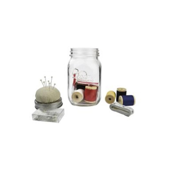 Set de costura en tarro Home Sweet Home de Legami, con los elementos esenciales para resolver pequeños arreglos de ropa.