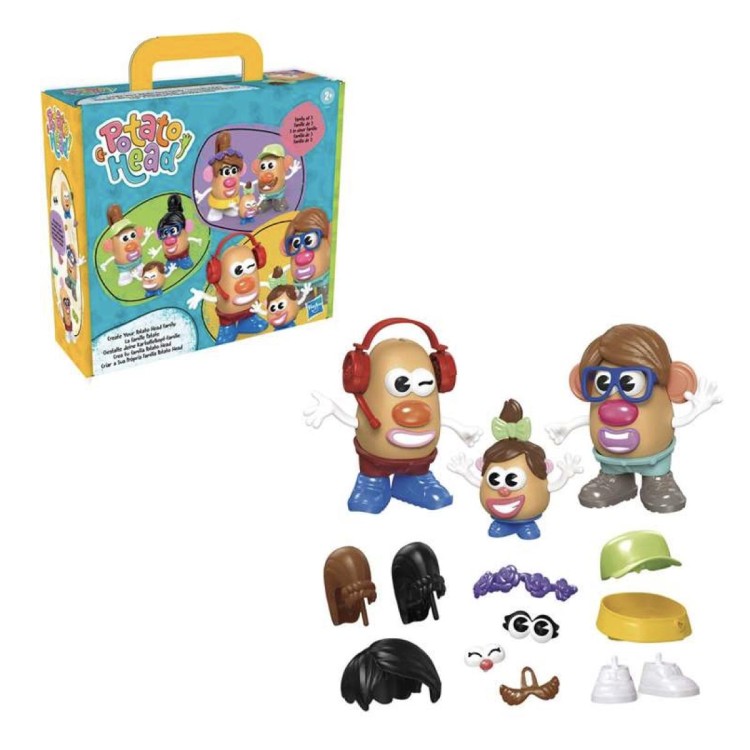 Potato Head Crea tu Familia incluye varios cuerpos y un surtido de piezas para inventar personajes y escenas. Cambia ojos, bocas, pelo, brazos y complementos.