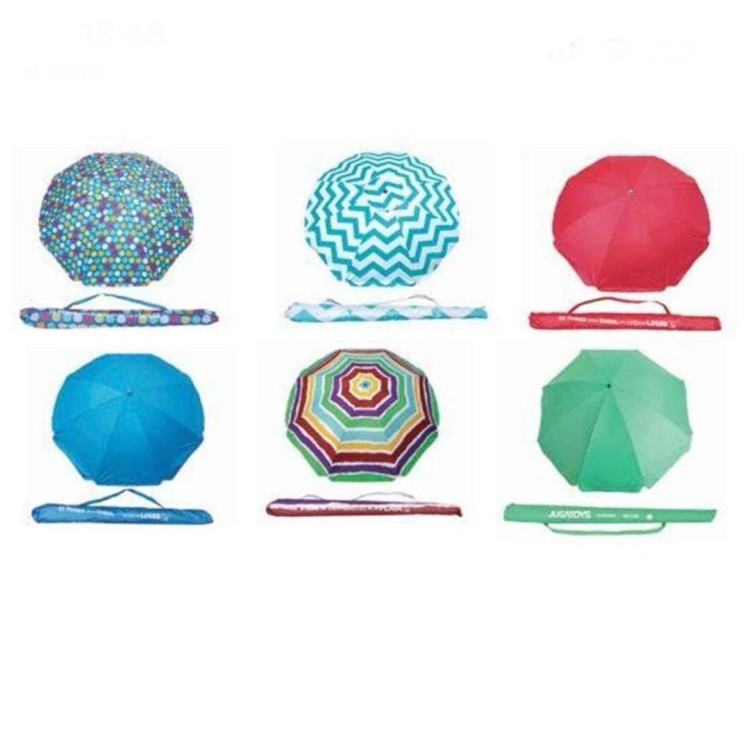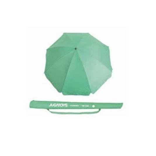 Sombrilla de playa de gran diámetro con estructura ligera de aluminio y varillas de fibra. El tejido Oxford 240D incluye protección UV 50+ para mayor confort.