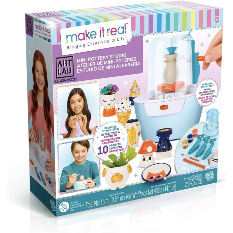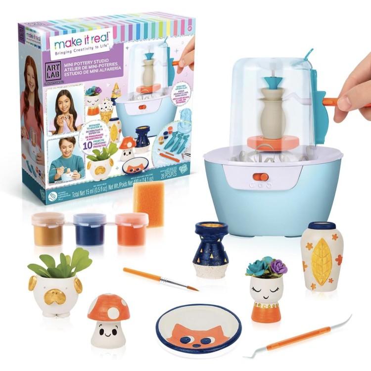 Estudio de mini alfarería para empezar a modelar tu propia cerámica. Trabaja la arcilla de secado al aire con el torno y da forma a cuencos, vasitos y pequeñas figuras. Después, decora con las pinturas incluidas y presume de creación.