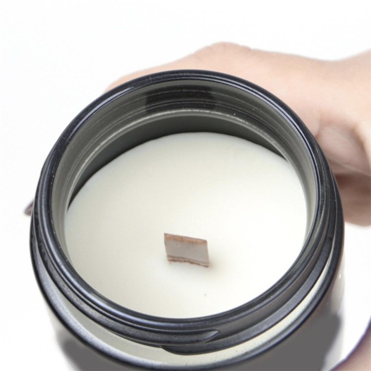 • Vela aromática en tarro metálico negro con mensaje romántico
